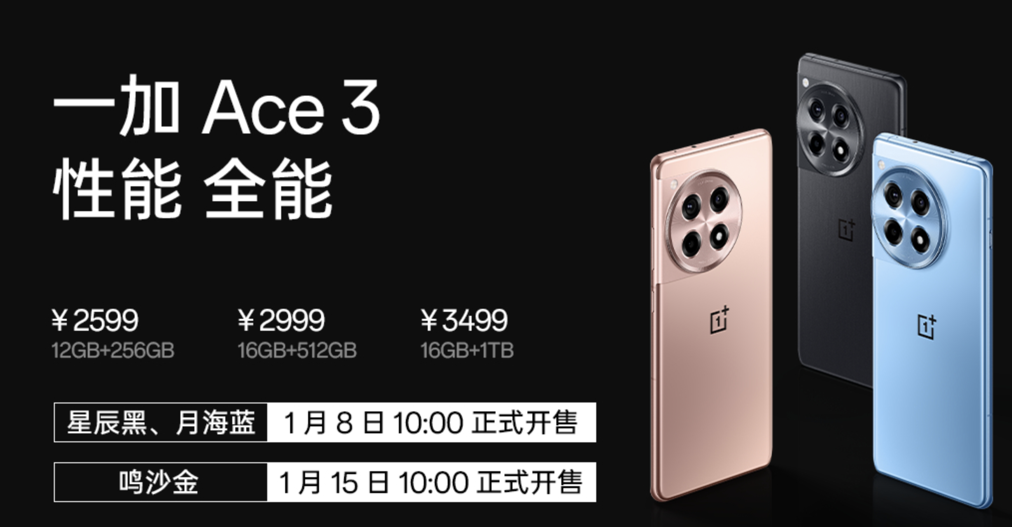 一加继续秉持「产品力优先」理念,让旗舰功能的全面遍及,既有强壮的产品力,也有极具诚心的价格。一加 Ace 3 星斗黑和月海蓝配色将于 1 月 8 日 10:00 正式开售,鸣沙金配色将于 1 月 15 日 10:00 正式开售,12GB+256GB 版别价格 2599 元,16GB+512GB 版别价格 2999 元,16GB+1TB 版别价格 3499 元。回来搜狐,检查更加多
