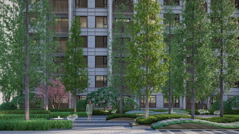 自然,雅致,现代”的审美哲学为调性,遵从适地适树的原则,以色彩素雅的本土品种为主基调,营造自然简约的植物景观空间。真正构建出一个林居生活的社区联结体,让居者可以回归自然、回归自我。