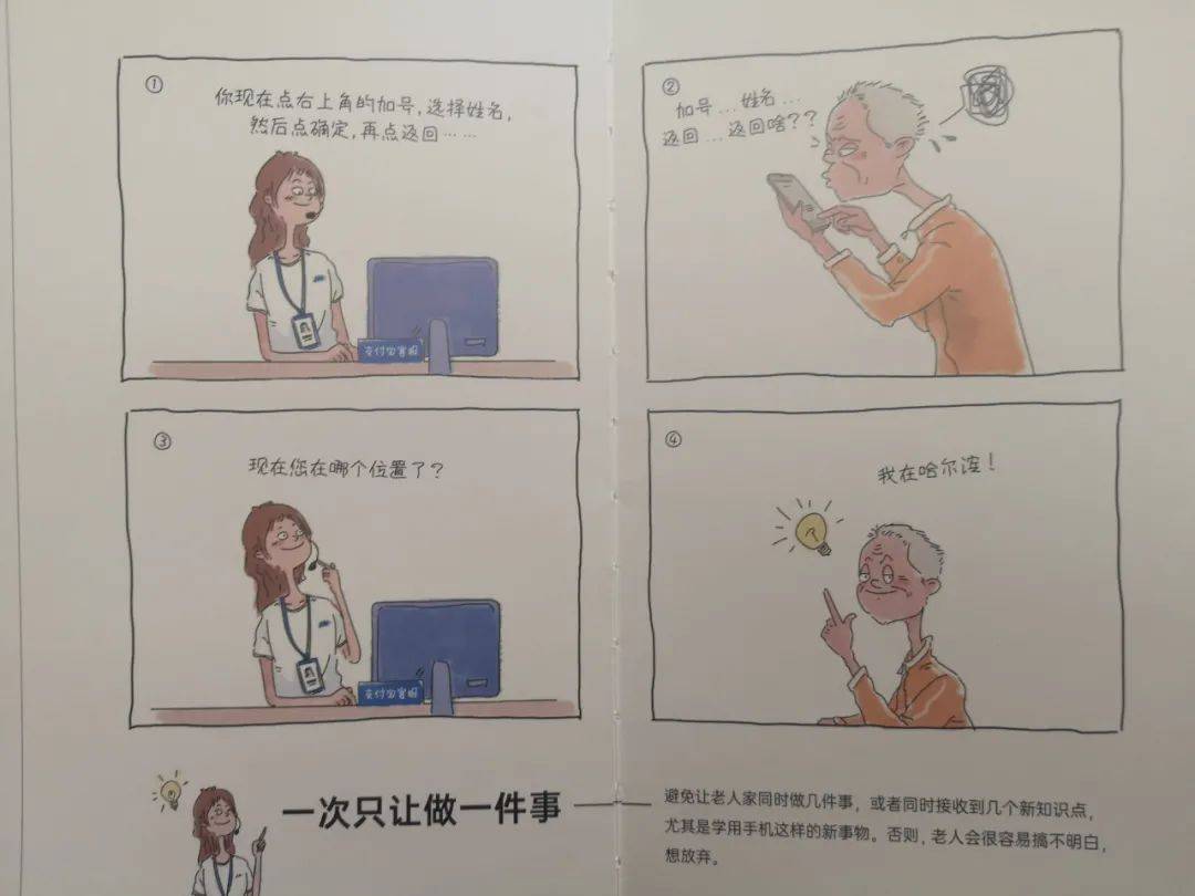 “现在,书店里摆满了怎么与孩子交流的畅销书,却基本上没有怎么与白叟好好说话的攻略。”在服务了数以十万计的白叟,答复了千百个古怪的问题后,他们把自己成功和不成功的经历画成了一本手册。
