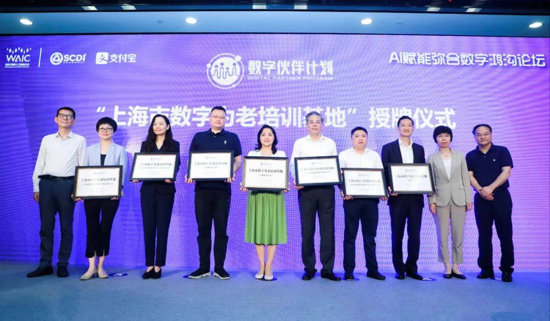 当天论坛,上海市经信委、市教委、市民政局为上海晚年大学、付出宝、浦东图书馆、上海电信、上海移动、上海联通、东方明珠新媒体授牌“上海市数字为老培训基地”。