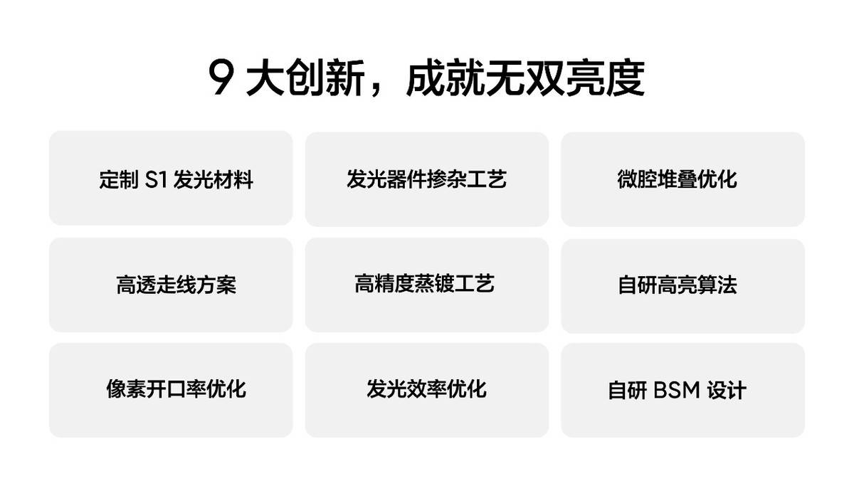 高亮度是高素质屏幕的标志,为实现屏幕亮度的巨大飞跃,线发光材料,在发光器件和像素结构上进行了大幅度优化,进一步提升发光效率,同时还在电路设计上使用了大量行业先进的技术,配合自研的高亮算法做到了软硬件的高效结合。通过9大维度的技术创新,实现了6000nit的无双亮度,引领屏幕亮度进入6K时代。