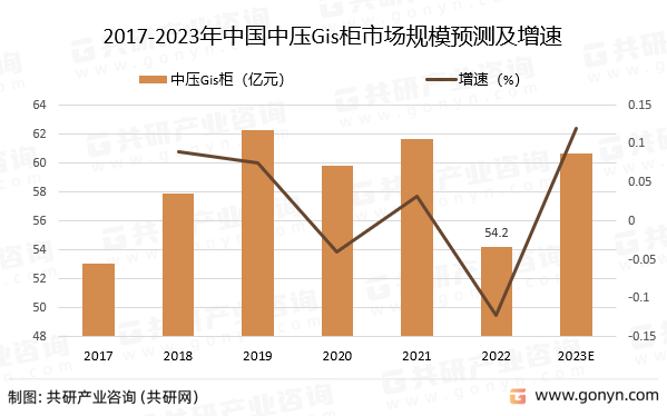 在曩昔的10年中,跟着我国城市地铁和城市间高铁的建造,中压Gis出现波动性加快速度进行开展;新冠疫情3年形成很多城市财务吃紧,出资项目延期放置较多。2022年,我国中压Gis柜商场规模为54.2亿元,估计2023年中压Gis柜商场规模将到达60.7亿元。